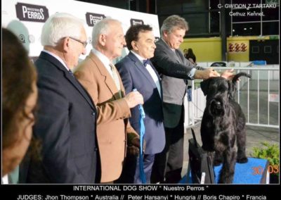 Gigante Importado desde Polonia, Super típico, cuerpo corto, con un INCREÍBLE MOVIMIENTO, Excelente carácter, costillas arqueadas, Excelente inserción de cuello en escapulas, línea superior soñada, hermosa cabeza, ojos e inserción de orejas.